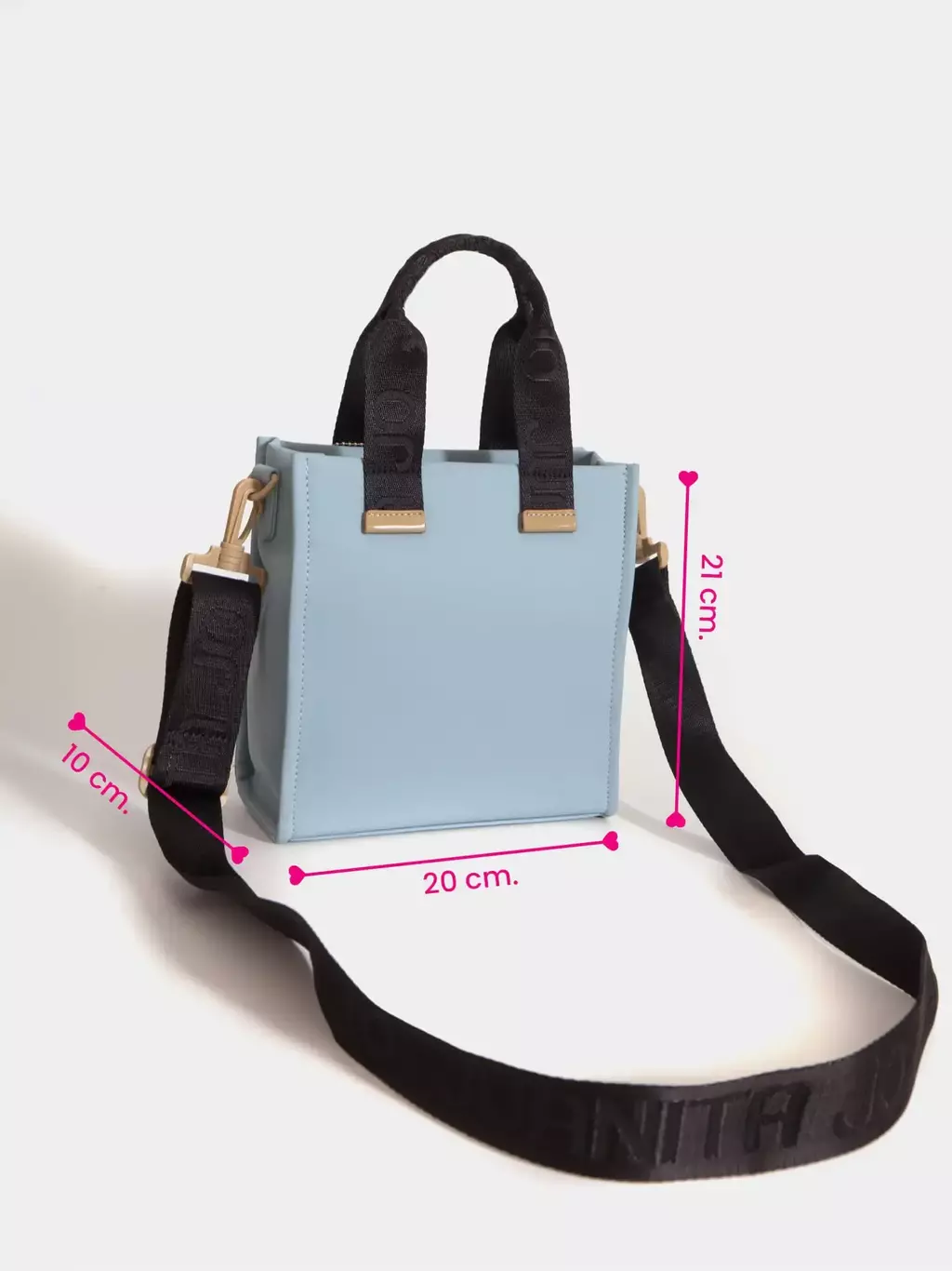 El celeste llegó para quedarse: es suave, canchero y uno de los colores tendencia de la temporada. Esta cartera está confeccionada en material alternativo al cuero combina diseño con practicidad. Bolsillo externo con logo metálico Juanita Jo, interior con dos bolsillos (uno con cierre) y portallaves. La correa está bordada con logo, es regulable y extraíble, para usarla como quieras. Además, podés chequear en la tienda su versión más grande.