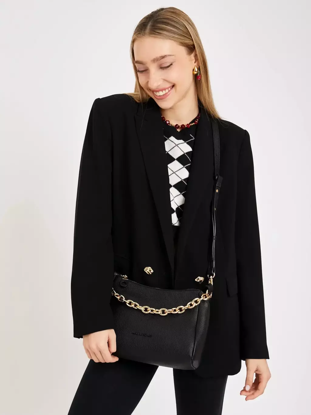 Esta cartera azul mezcla versatilidad y estilo en un diseño moderno. Sus asas dobles son cómodas para llevar al hombro, mientras que la correa regulable y desmontable la convierte en bandolera cuando lo necesitás. También viene con cadena metálica que podés usar como accesorio o también como correa corta.