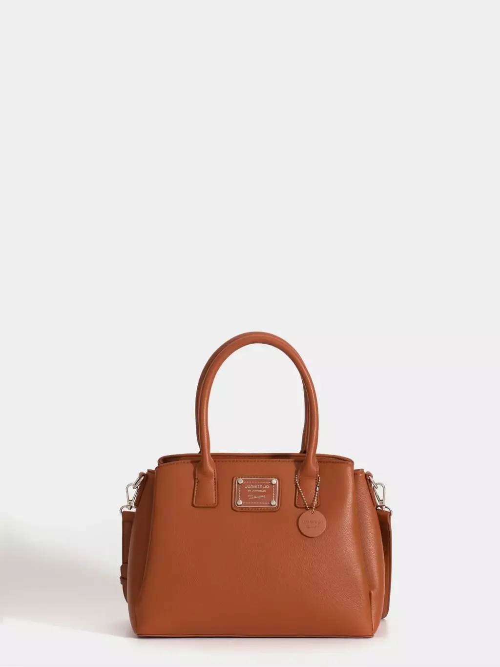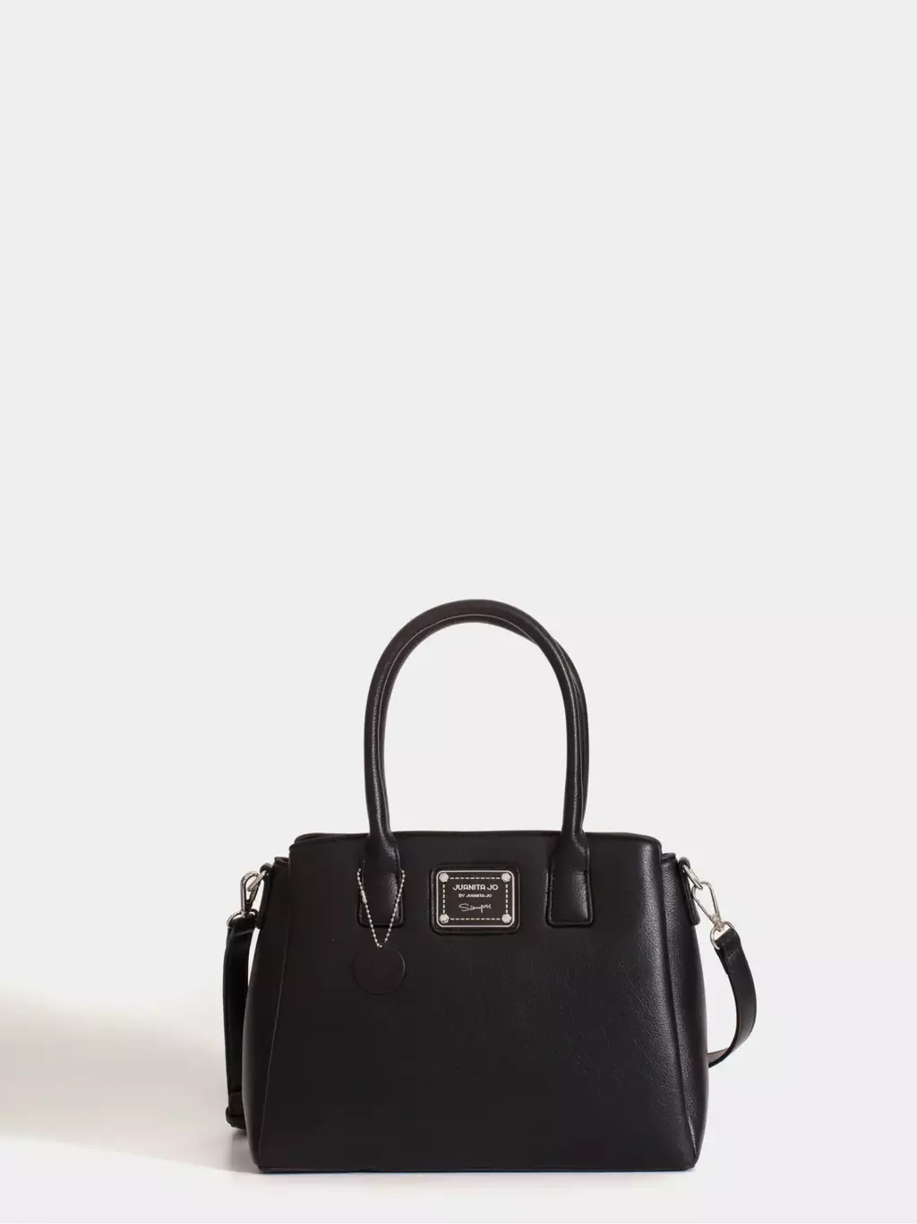 Está confeccionada en material alternativo al cuero con efecto graneado. Tiene tres compartimentos, bolsillos interiores (uno con cierre y portallaves incluido), además viene con correa para llevarla cruzada. El tono negro le da ese aire de autoridad que combina perfecto con blazers y botas . Tiene una faja trasera para enganchar a la valija lo que la hace ideal para viajar.
