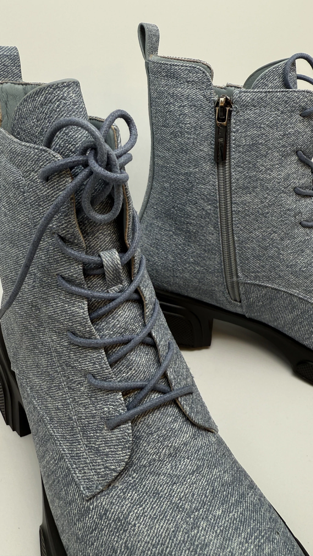 Descubrí el Civitavechia borcego simil jean D957-M6872, un borcego super original y liviano con taco de 4 cm y base de 2 cm., ideal para tus días más frescos. Su interior con corderito suave te brinda calidez y comodidad sin perder estilo. Confeccionado en simil jean, combina resistencia y diseño único para acompañarte en cada paso. ¡Sumá esta propuesta cálida y práctica a tu colección y disfrutá del confort todo el día! Cierre lateral y cordón frontal.