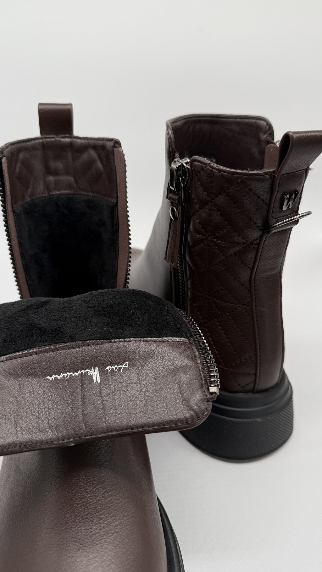 Descubrí la bota MADRID marrón de LAS WEIMANN, el calzado que combina confort y estilo para tus días! Fabricada en cuero PU durable e impermeable, esta bota baja con taco de 4,5 cm y base de 2 cm es la opción perfecta para mantener tus pies calentitos sin sacrificar la elegancia. Forradas interiormente con corderito fino. Su diseño cómodo se adapta a cada paso, brindando soporte y suavidad. Ideal para cualquier ocasión, lucila con tus outfits favoritos y disfrutá de su versatilidad. Sumá MADRID a tu colección y sentí la diferencia en cada paso!